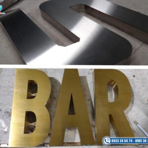 - Chữ inox vàng gương, trắng bóng, xước mờ, đen nhám